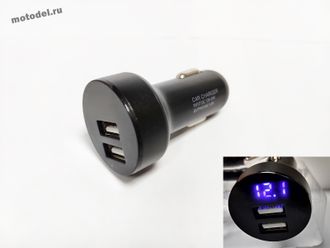 Зарядник адаптер в прикуриватель, 3,1А, с вольтметром